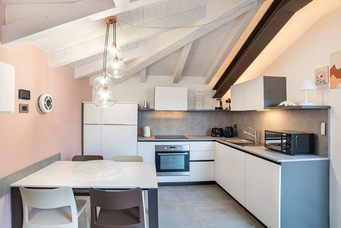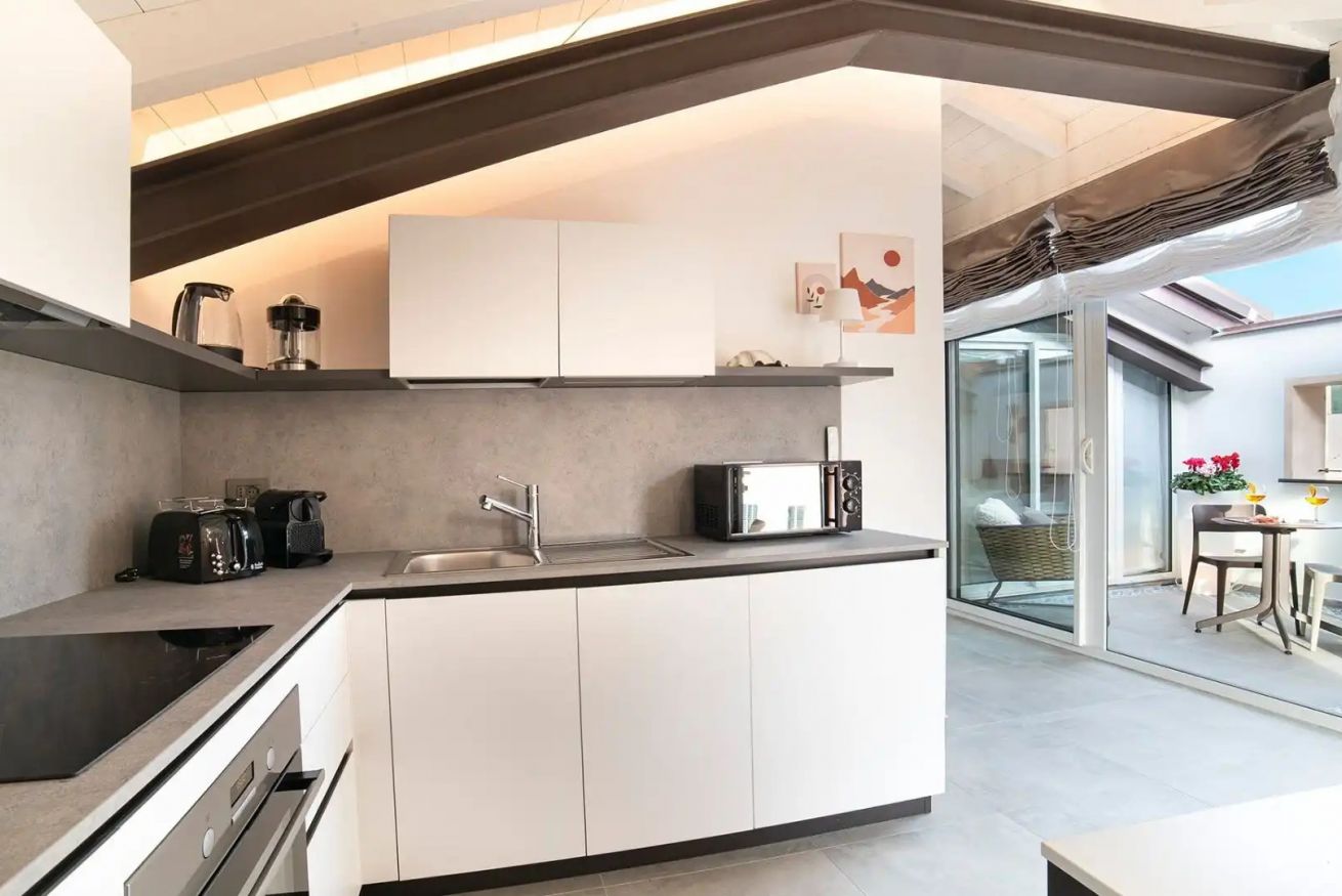 La cucina è totalmente accessoriata e funzionale, attrezzata di tutti gli elettrodomestici che possono aiutarvi nella preparazione dei vostri pasti (frigo con congelatore, forno, piano ad induzione, macchinetta del caffè Nespresso, microonde, tostapane, spremiagrumi, bollitore, etc..).