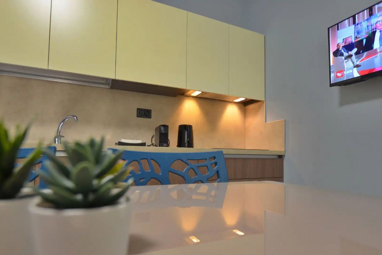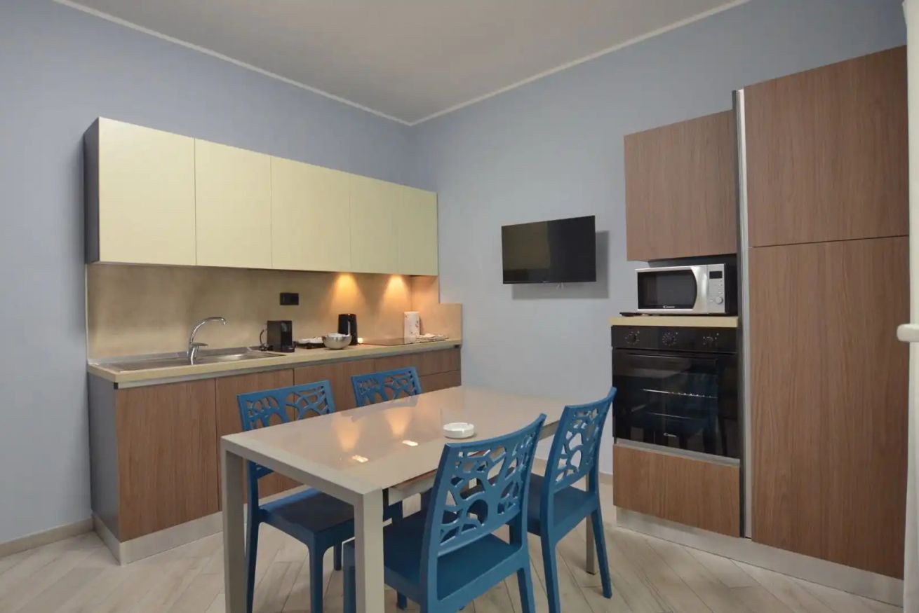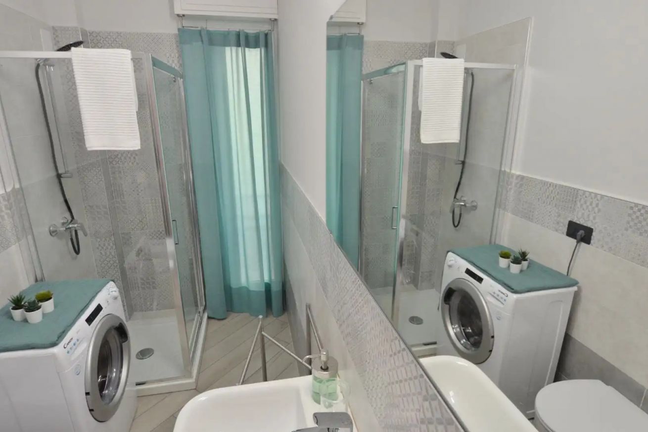 La cucina include, oltre al piano cottura, un frigorifero con freezer, la lavastoviglie, il forno, un forno a microonde, posate, stoviglie, pentole e tutto l'occorrente per cucinare sono ovviamente a vostra disposizione. Inoltre è presente in appartamento tutto l'occorrente per il bucato: lavatrice (detersivi inclusi), stendino e mollette, asse e ferro da stiro. Biancheria letto e biancheria bagno sono fresche e pulite e pronte ad accogliervi. Nel bagno troverete dei dispenser con sapone e docciaschiuma, il phon, e la carta igienica.