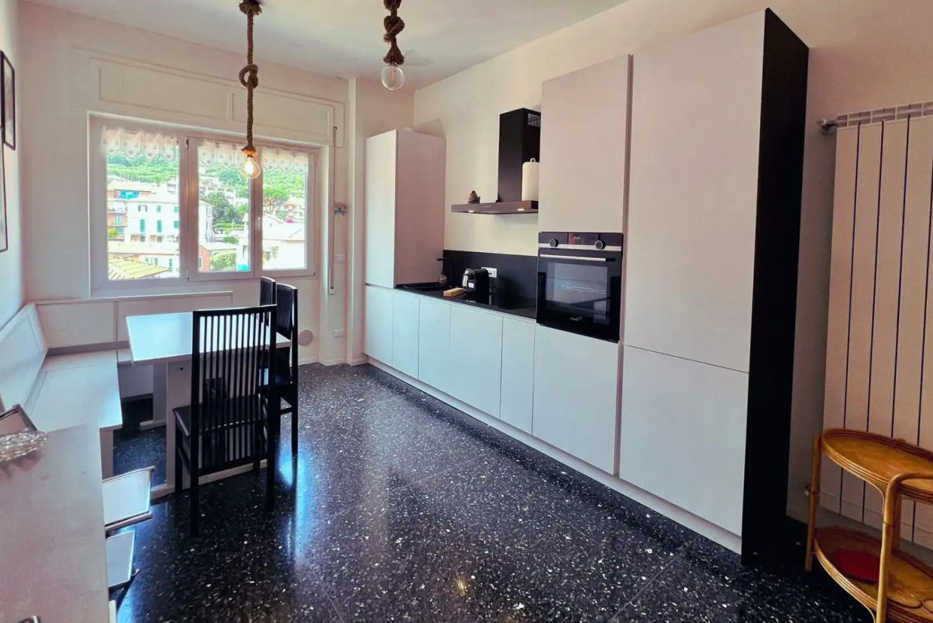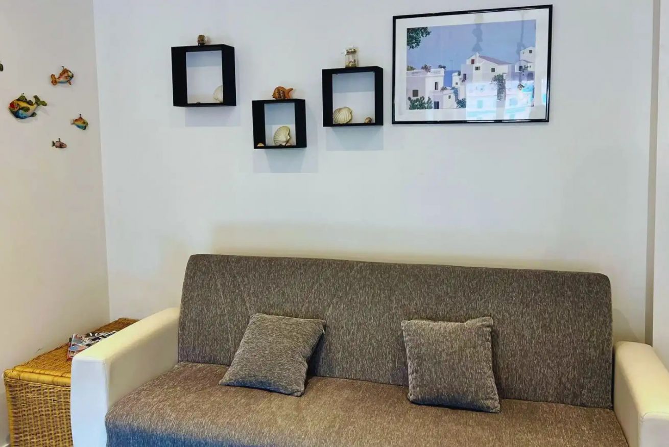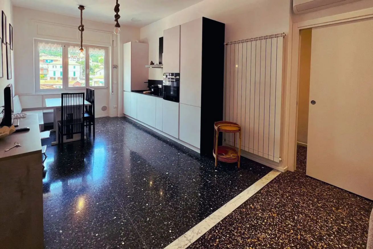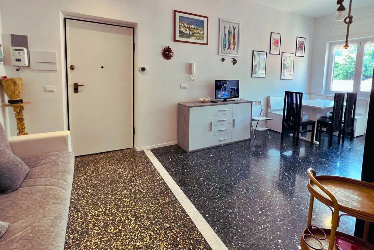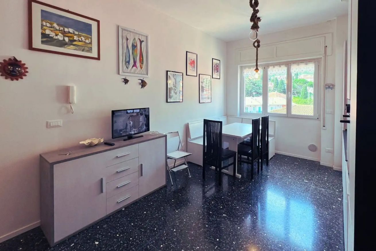 L'alloggio si trova a due passi dalla spiaggia di Borgio Verezzi. Ingresso su soggiorno con cucina a vista ben attrezzata.