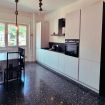 La cucina include, oltre al piano cottura con 4 fuochi a induzione, un forno, una lavastoviglie, un frigorifero con freezer, una macchinetta per il caffè Nespresso.