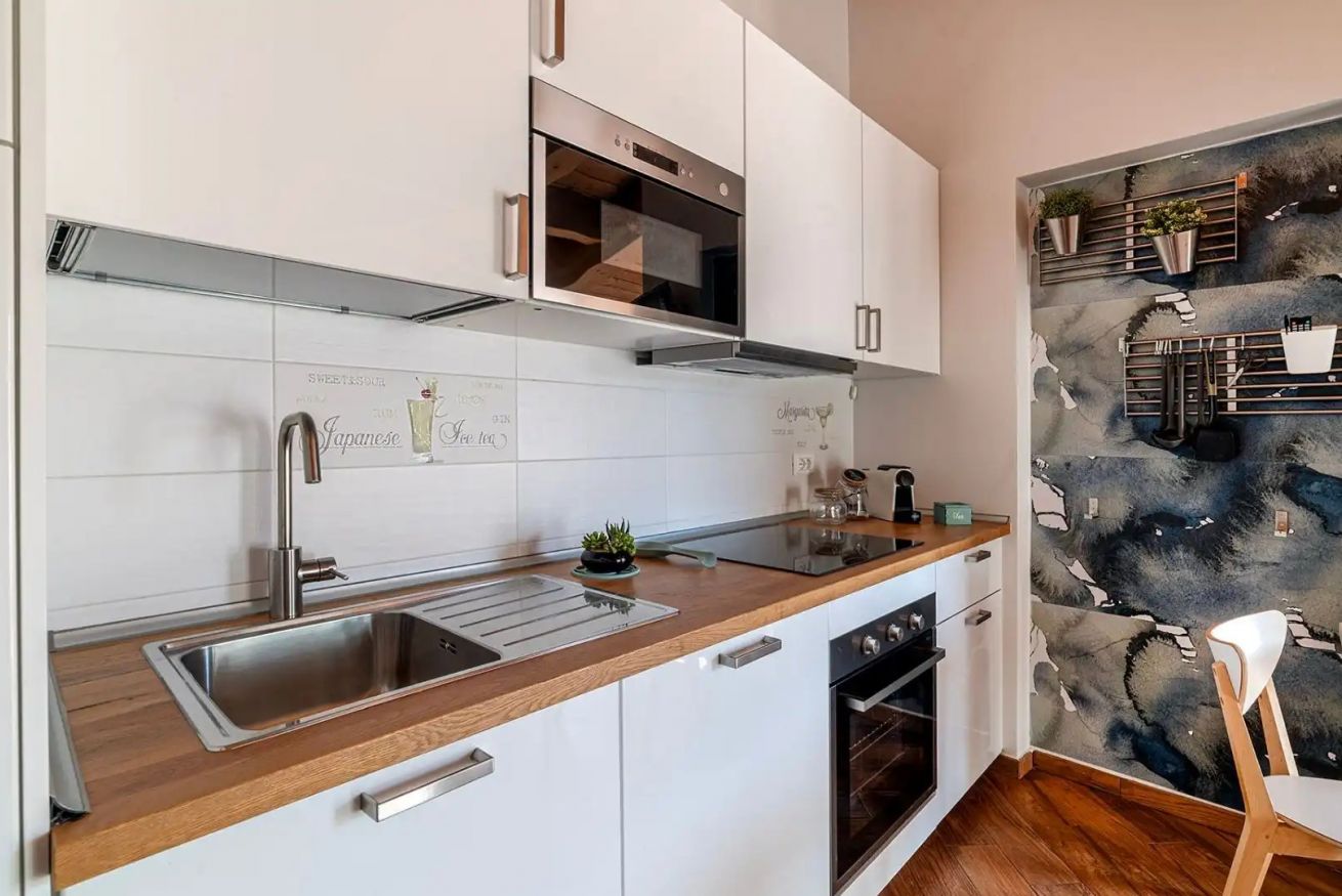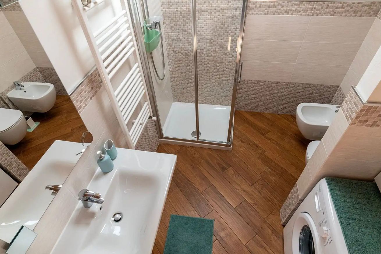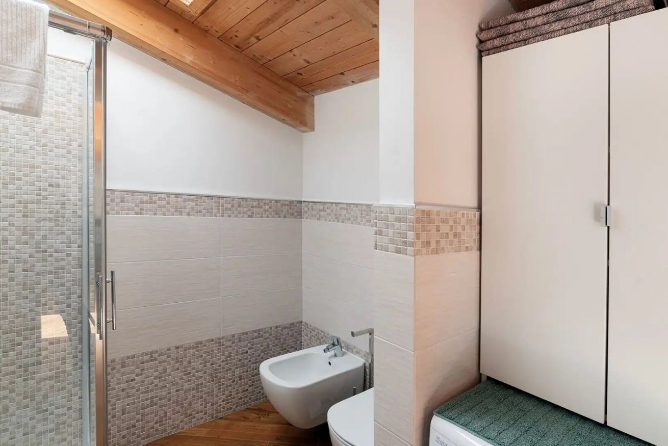 La cucina include, oltre al piano cottura ad induzione, un frigorifero con freezer, la lavastoviglie, un forno a microonde, la “Nespresso” per il caffè con capsule incluse, posate, stoviglie, pentole e tutto l'occorrente per cucinare sono ovviamente a vostra disposizione. Inoltre è presente in appartamento tutto l'occorrente per il bucato: lavatrice (detersivi inclusi), stendino e mollette, asse e ferro da stiro. Biancheria letto e biancheria bagno sono fresche e pulite e pronte ad accogliervi. Nei bagni troverete dei dispenser con sapone e docciaschiuma, il phon, e la carta igienica.