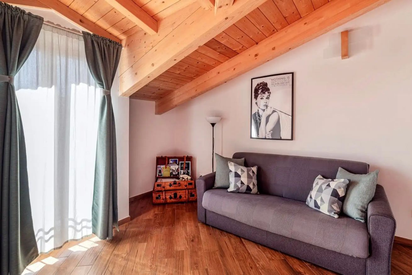 La “Tiffany House” è un’abitazione di nuova realizzazione, situata al quarto ed ultimo piano di un caseggiato storico dotato di ascensore e senza alcuna barriera architettonica. L'alloggio è pittoresco con le sue travi a vista, confortevole ed accogliente. E' orientato ad Est ed è molto soleggiato, luminoso, tranquillo e silenzioso.